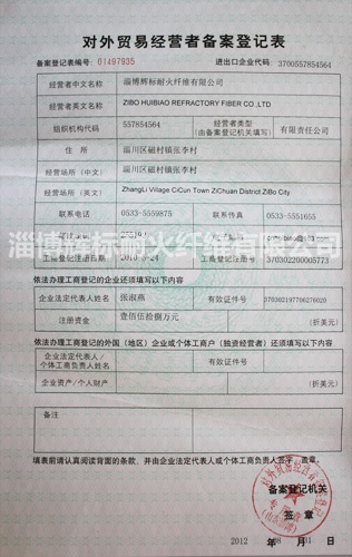 淄博輝標(biāo)耐火纖維有限公司是一家專業(yè)從事耐火纖維棉,陶瓷纖維和莫來石晶體纖維材料的研制開發(fā)、生產(chǎn)經(jīng)營及施工于一體的綜合性公司,下屬淄博輝標(biāo)耐火纖維有限公司博山分公司、淄博輝標(biāo)耐火纖維有限公司外貿(mào)分公司、淄博輝標(biāo)耐火纖維有限公司窯爐工程分公司、淄博輝標(biāo)耐火纖維有限公司銷售分公司、淄博輝標(biāo)耐火纖維有限公司潮州分公司。
